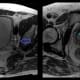 Pre-operative images — Left: Large bulky left pelvic lymph node (which was resected); Right: Extra prostatic extension of the cancer along the left posterior prostate